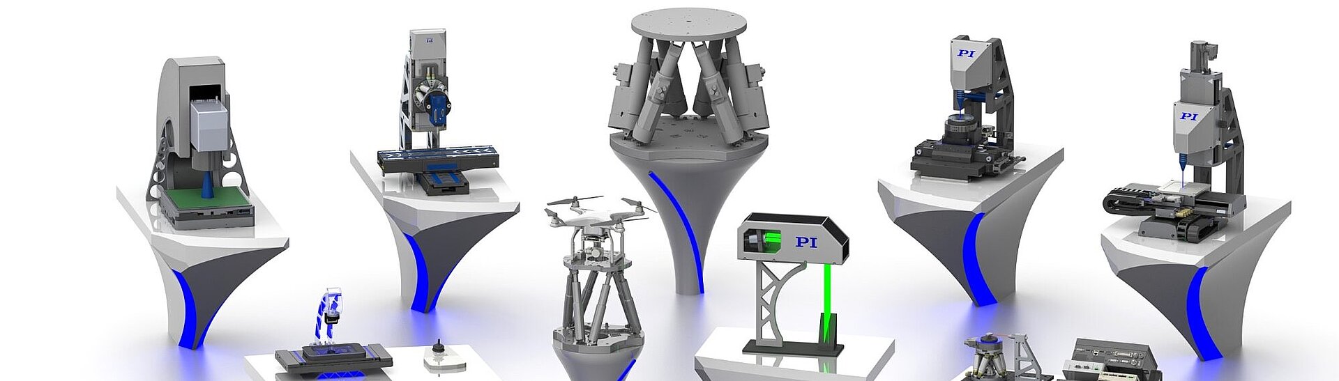 Every market and every application requires different things from positioning solutions, for example, with regard to precision, dynamics, travel ranges, control, or software. Due to its wide-ranging technology and product portfolio, PI can respond to individual requirements, as well as combine solutions flexibly - from individual components through to multi-axis system assemblies. This page presents different examples of our application-specific demonstrators, which we can configure and assemble to meet your specific requirements.