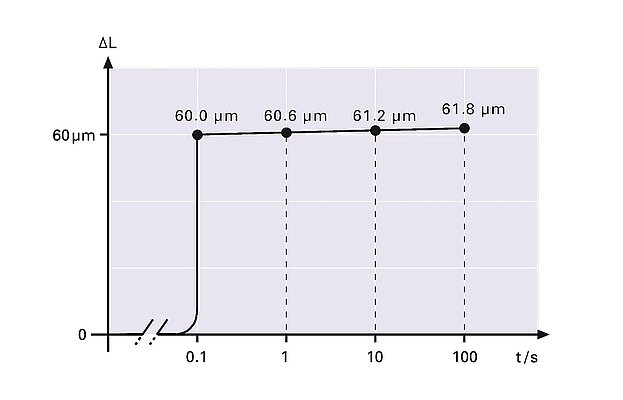 ピエゾ素子は電圧の印加を一定にしても、素子内部の分極化は直ぐには収まらず、暫くの間分極化が進みます。これに伴い素子の位置も時間とともに変化し、安定するまでに時間がかかります。この一連の現象を「クリーピング」と呼びます。