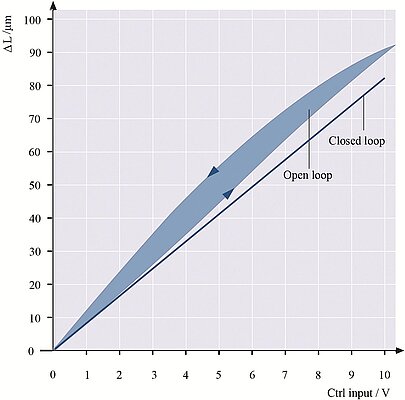 この2つの特性により、素子の伸び量を精密に制御し、目的の位置で停止させることは電圧の制御だけ(オープンループ)では非常に困難となります。