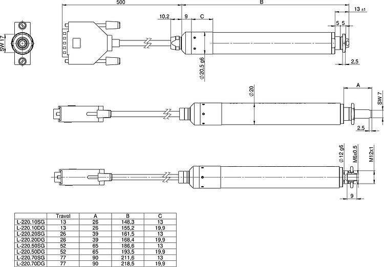 | Miscellaneous | L-220.10DG | L-220.20DG | L-220.50DG | L-220.70DG | L-220.10SG | L-220.20SG | L-220.50SG | L-220.70SG | Tolerance |