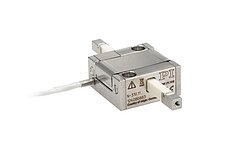 High-resolution linear actuator with DC motor; DC gear motor; 10 mm travel range; 40 N feed force; 0.75 mm/s maximum velocity; trapezoidal-threaded spindle; incremental rotary encoder, 2048 counts/rev. sensor resolution; 0.1 m cable length