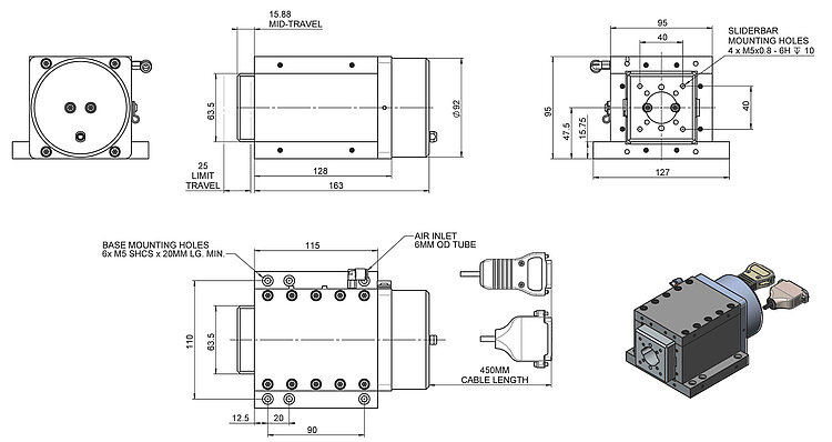 The PIglide stage with air bearing and voice coil drive offers high velocity and acceleration in a compact package.