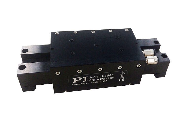 PIglide MB miniature linear stage with air bearing; ironless 3-phase linear motor; 35 mm travel range; 30 N load capacity; 250 mm/s maximum velocity; incremental linear encoder, 20 µm sensor signal period, sin/cos, 1 V peak-peak; 0.45 m cable length