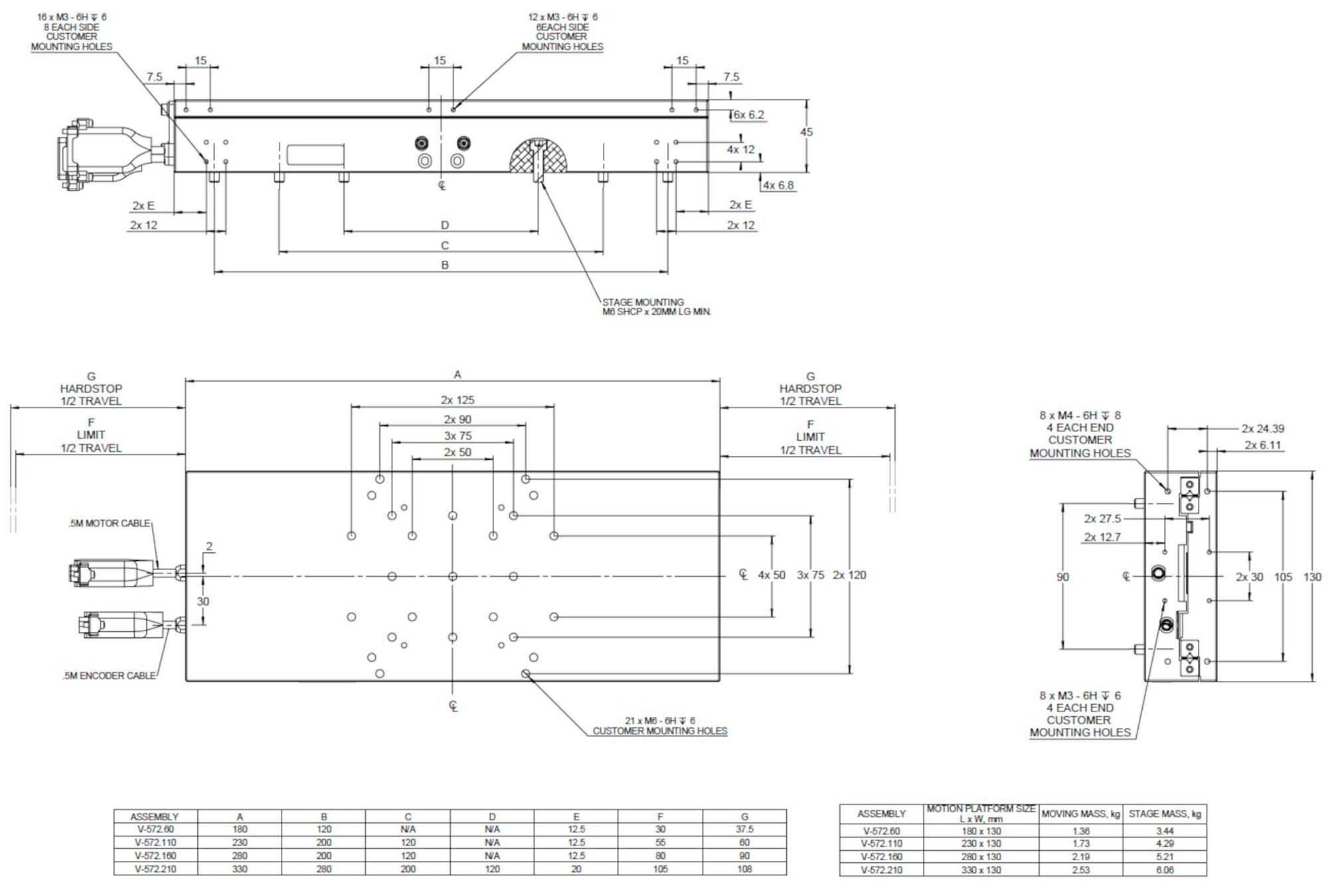 V-572 linear stages are designed for XY mounting and are compatible with standard ACS-based A-8xx electronics.