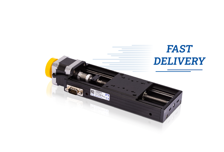 Linear stage; DC motor; 25 mm travel range; 50 N load capacity; 20 mm/s maximum velocity; metric threaded spindle; incremental rotary encoder, 2000 cts./rev. resolution, A/B quadrature, RS-422