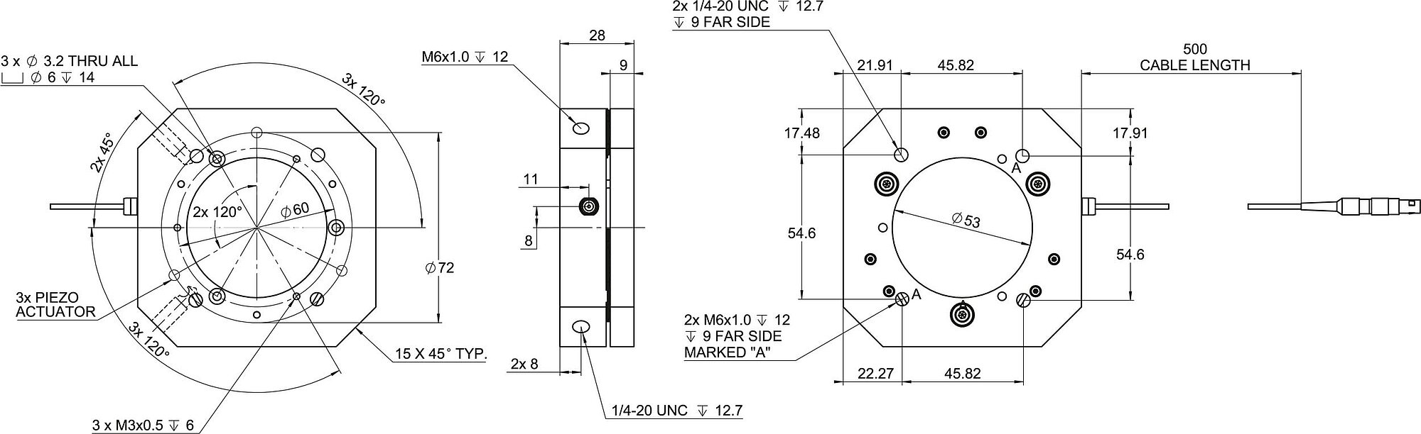 • Pigtails without connector for individual actuator control (Z, tip/tilt)