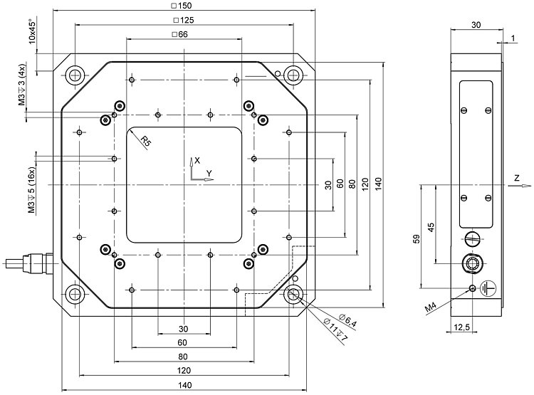 | Travel range in Y | 100 µm | 100 µm | 200 µm | 200 µm | 300 µm | 300 µm | 45 µm | |