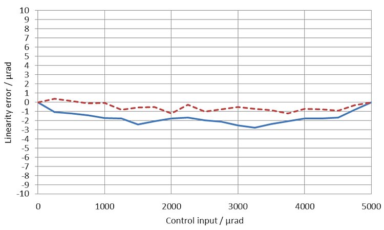 | Resolution in θX, open loop | 0.05 µrad | 0.05 µrad | 0.1 µrad | 0.1 µrad | typ. |