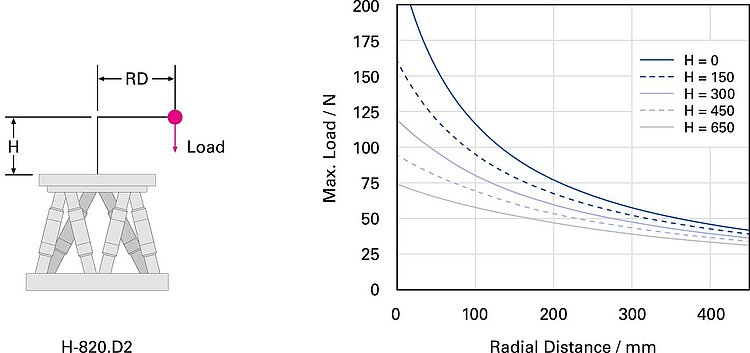 ヘキサポッド(基本モデル)、耐荷重:20 kg、最大速度:20 mm/s、D-subコネクタ。 接続ケーブルは同梱されていませんので、別途ご注文ください。