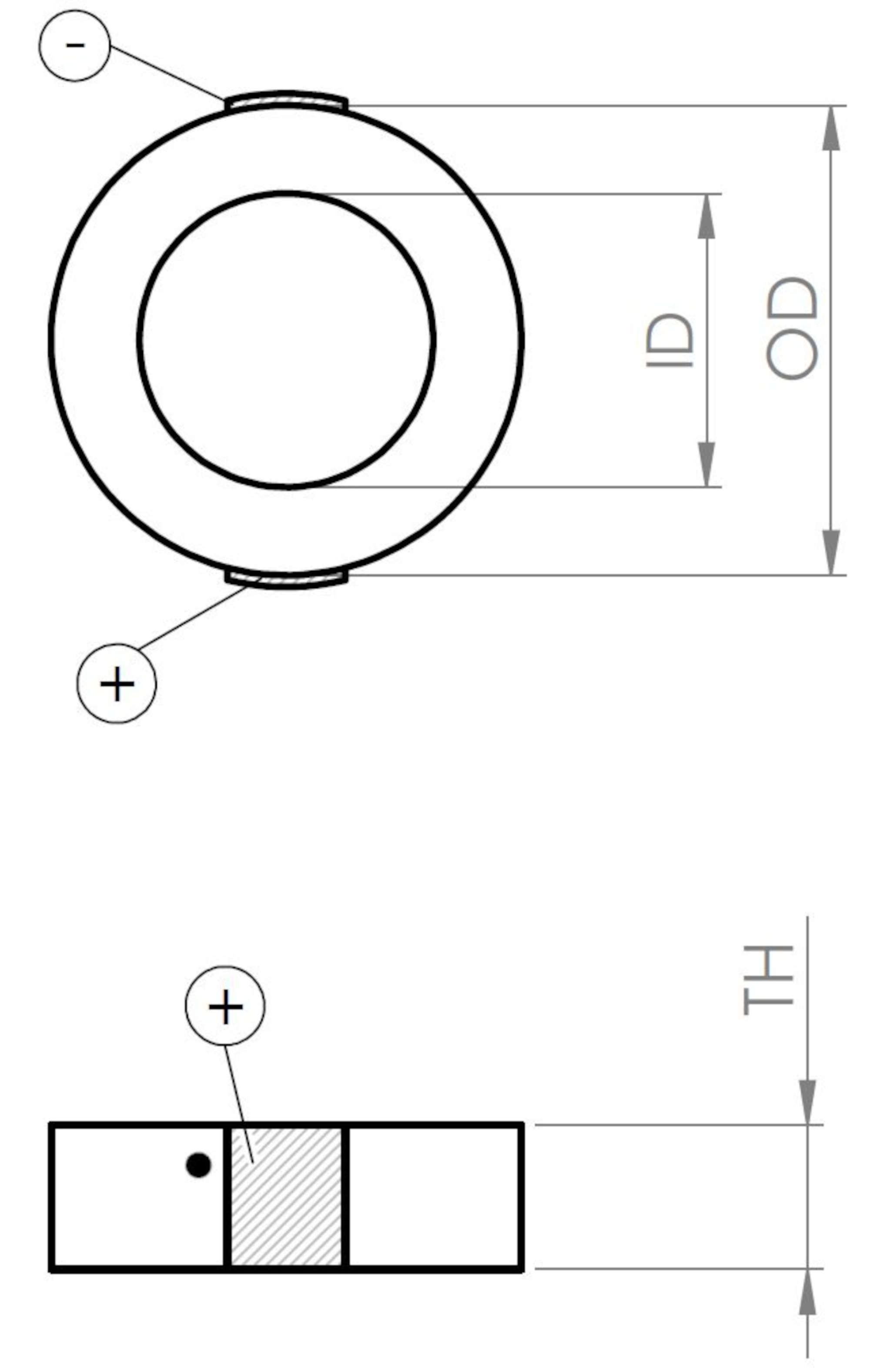 Round PICMA® Chip miniature piezo actuator with inner hole, 2.0 µm travel range, OD 16 mm × ID 8 mm × TH 2.5 mm