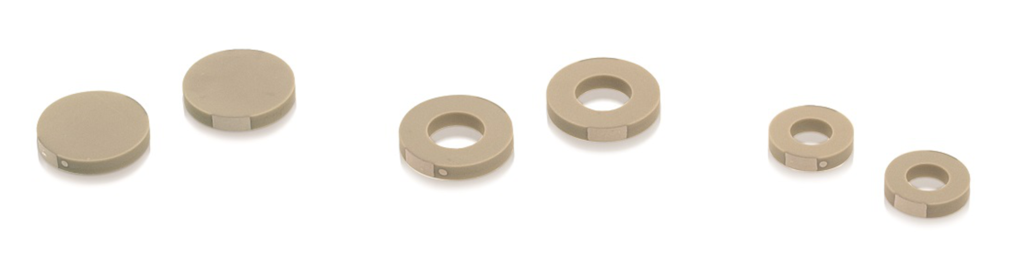 Round PICMA® Chip miniature piezo actuator with inner hole, 2.0 µm travel range, OD 5 mm × ID 2.5 mm × TH 2.5 mm