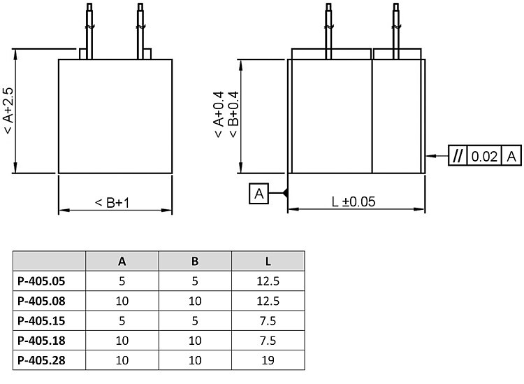 | Drive Properties | P-405.05 | P-405.08 | P-405.15 | P-405.18 | P-405.28 | Tolerance |