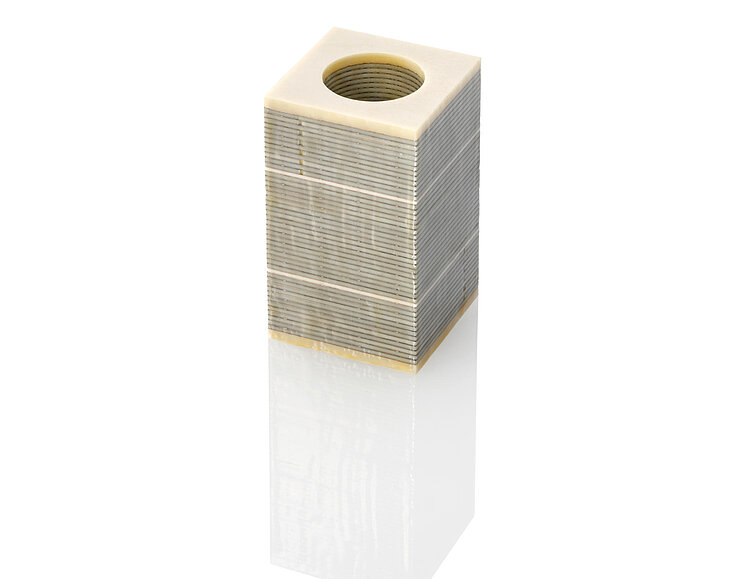 PICA Shear XYZ piezo actuator; PICA Shear piezo actuator drive; 10 µm × 10 µm × 10 µm travel range (open loop) (X × Y × Z); 16 mm × 16 mm surface; 40 mm length; 10 mm inner diameter; connecting wires; 0.1 m cable length