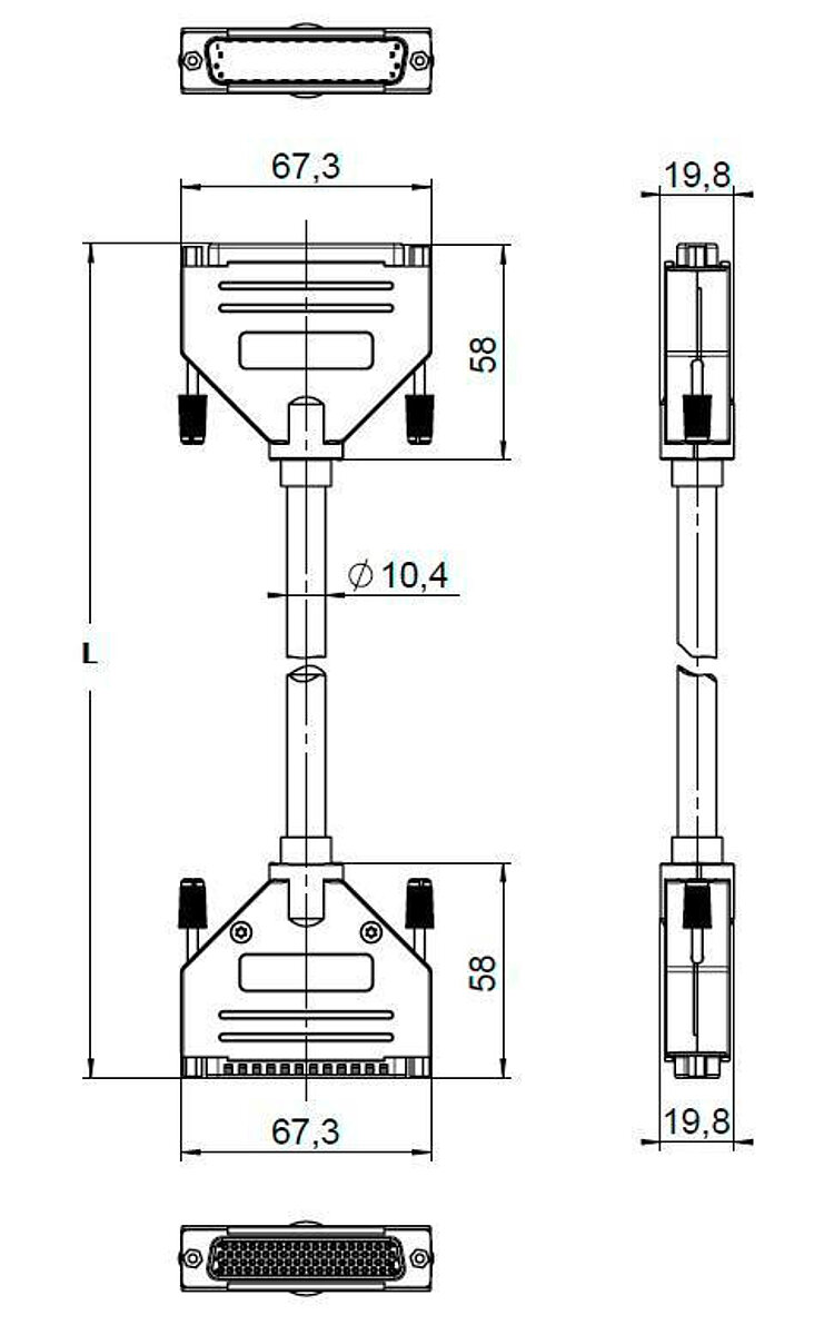 ヘキサポッド用データ伝送ケーブル、ドラッグチェーン対応、HD D-sub 78(オス/メス)、10 m