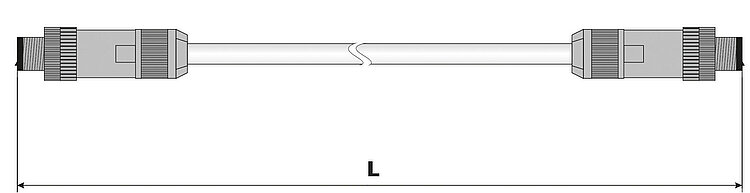 ヘキサポッド用電源ケーブル、ドラッグチェーン対応、M12(オス/メス)ストレート、10 m