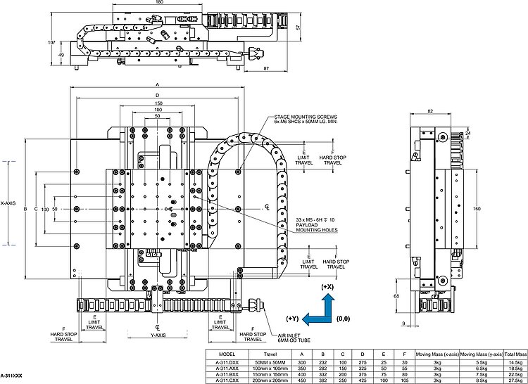 | Travel range in X | 50 mm | 50 mm | 100 mm | 100 mm | 150 mm | 150 mm | 200 mm | 200 mm | 300 mm | 300 mm | |
